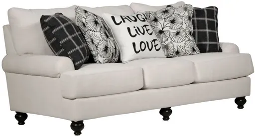 The Cumberland collection features fresh, clean looks with its off-white, ecru colored body fabric contrasted by stylish, black patterned accent pillows. Black solid wood legs continue the stylish contrast of light and dark to the floor. While style was top of mind in designing the Cumberland collection, comfort is always our first priority.