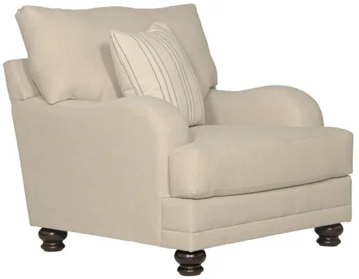 The Jonesport collection features an exquisite traditional-style matching chair – a great companion to the sofa and loveseat. This chair is covered in a warm wheat-colored fabric and boasts recessed sloped arms for comfort and style. Accompanied by a coordinating fashion-forward accent pillow and supported by 4 solid wood legs, it effortlessly merges classic charm with contemporary flair.