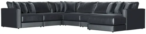 The Jackson Furniture Remington 6-Piece Slate L-Shape Sectional and Chaise provides ample seating with a cozy chaise extension for extra comfort. Its roomy configuration is perfect for family gatherings, offering plush cushioning and durable upholstery for everyday relaxation and long-lasting use.