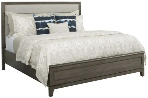 The Kincaid® Cascade Ross Brown/Gray California King Upholstered Panel Bed features a refined blend of warm brown and gray tones with an upholstered headboard framed in ash wood. Its clean silhouette and natural grain accents create a calming, elegant centerpiece that brings timeless character and comfort to the bedroom.