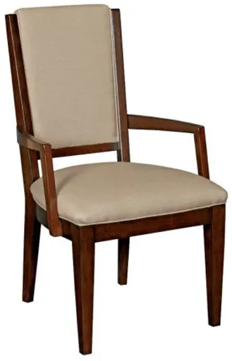 The Kincaid® Elise Amaretto/Mushroom Spectrum Arm Chair blends comfort and craftsmanship with its warm amaretto wood frame and soft mushroom-toned upholstered seat. Gently curved arms and clean lines create a refined, inviting look, making it a perfect complement to both casual and formal dining spaces.