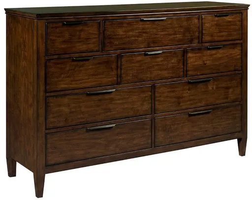 The solid wood Luccia bureau is great for storage with four larger, full-depth drawers below and six more mid-sized drawers artfully arranged above. The top center drawer also features a flip-down front, making it ideal for use with a media component.