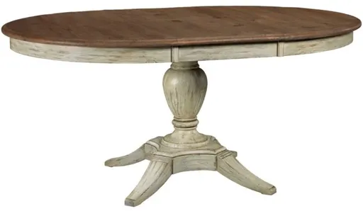 This table makes the perfect centerpiece for an intimate dining space. It can be used as a 48 inch round or with the included leaf it extends to 66 inches to comfortably seat six. Made of solid New Zealand pine wood, it also includes our Kinguard performance finish.