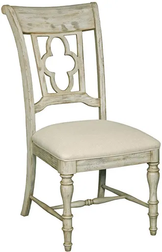 A stylish dining chair often times plays the biggest role in defining the style of the dining room. That is certainly the case with the Weatherford Side and Arm Chairs. Its quatrefoil design motif adds character that balances casual and traditional sensibilities. It also features a comfortable upholstered seat and stretchers on the base for long-lasting strength.
