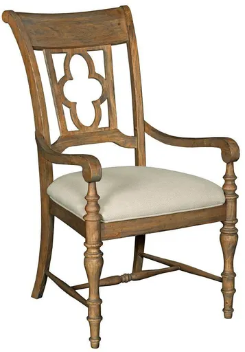 A stylish dining chair often times plays the biggest role in defining the style of the dining room. That is certainly the case with the Weatherford Side and Arm Chairs. Its quatrefoil design motif adds character that balances casual and traditional sensibilities. It also features a comfortable upholstered seat and stretchers on the base for long-lasting strength.
