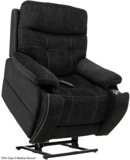This iNFI Elite recliner is an FDA Class II Medical Device that redefines luxury and comfort. Featuring MegaGuard® performance fabric, three-zone heating, adjustable headrest and lumbar, it offers personalized relaxation. With independent back and chaise movement, hidden cup holders, and a built-in wireless charger, it delivers unmatched convenience and style.