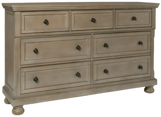The Allegra dresser in a sophisticated pale pewter finish combines durability, style, and thoughtful storage. Expertly crafted from solid mindi wood, engineered woods, and wood veneers, this dresser not only showcases the natural beauty of Mindi's rich grain but also ensures long-lasting durability and resistance to decay.