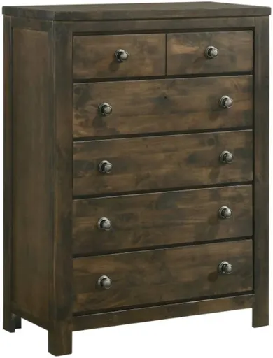 The Blue Ridge 5 Drawer Chest by New Classic Furniture is a sustainable storage solution that seamlessly blends environmental consciousness with timeless design. Crafted from reclaimed solid wood sourced from various origins, this chest is a testament to eco-friendly practices, contributing to the preservation of our natural resources.