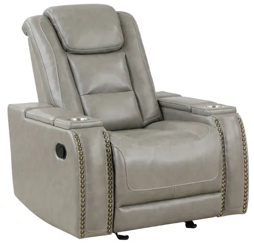 The Breckenridge Genuine Leather Glider Recliner in Gray combines luxury, durability, and comfort in a stylish piece. Crafted with a robust frame made from hardwood and manufactured wood, this recliner offers long-lasting support and reliability.