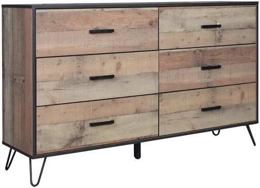 The Elk River 6-Drawer Large Dresser is a standout piece that beautifully marries modern industrial design with classic durability. Constructed from eco-friendly manufactured woods and an environmentally conscious decorative laminate, this dresser is designed to withstand the test of time.