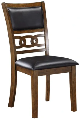 Enhance your dining space with New Classic Gia dining chairs in a rich brown finish. Crafted from solid rubberwood and mindi veneers, these chairs offer a perfect blend of durability and aesthetic appeal. The warm brown finish, achieved through a multistep process and clear coat, highlights the exquisite wood grain.