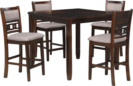 Complete your dining space with the New Classic Furniture Gia 5-Piece Wood Square Counter Dining Set, a harmonious blend of durability and beauty. Crafted from solid Rubberwood and Mindi veneers, this set is designed to withstand the test of time.