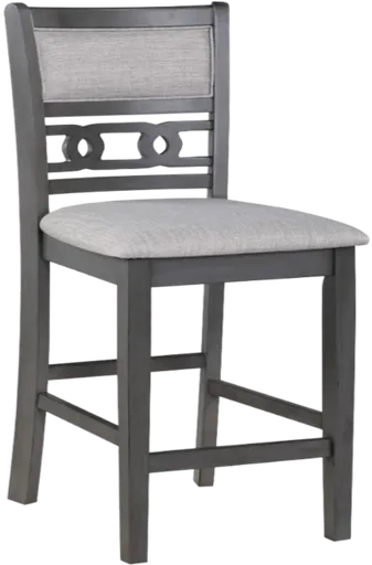 Enhance your dining room with this New Classic Gia Counter Chair in a sophisticated gray finish. Crafted from solid rubberwood and mindi veneers, these chairs combine durability with timeless beauty. The contemporary gray finish, enriched by a charcoal wash, accentuates the natural wood grain.