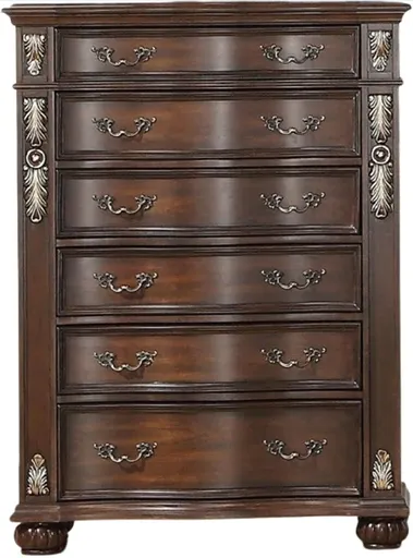 The Maximus Collection made with poplar solids and birch veneers. With its intricate craftsmanship and gracefully leaf design it will take your breath away. The fluted posting and turned claw foot details are accentuated by Madeira brown finish. The look is completed by elevated panels, matching hardware and distinctive moldings.