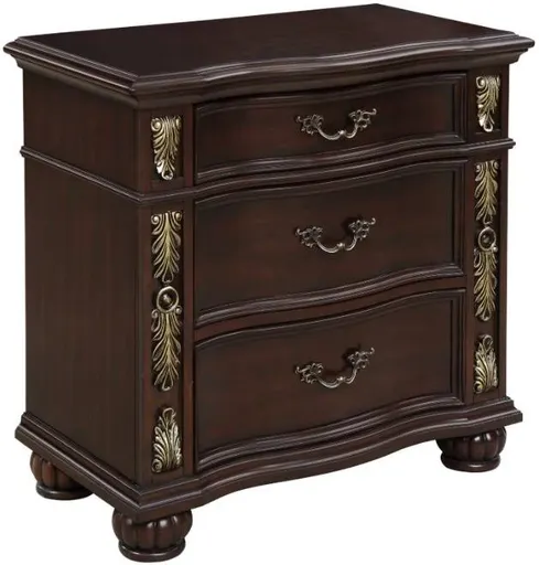 The Royal Classics Maximus 3-Drawer Nightstand in Madeira Brown perfectly blends timeless design and exceptional craftsmanship. Constructed from solid poplar and premium birch veneers, this heirloom-quality piece is built to last, offering enduring beauty and durability for years.