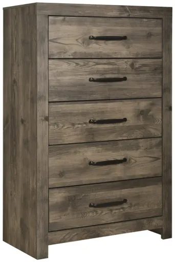 Introducing the Misty Lodge 5-drawer chest in greige, a versatile and stylish storage solution for your bedroom. Crafted with durability and eco-friendliness in mind, this chest is constructed using manufactured woods and environmentally conscious decorative laminate, ensuring both beauty and quality.