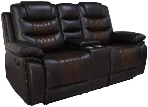 Experience the perfect blend of comfort and functionality with the Nikko dual recliner storage console loveseat with hidden cupholders in brown. This loveseat, constructed with hardwood and plywood frames, ensures long-lasting durability and stability. Indulge in unparalleled comfort and style in your home with the Nikko reclining loveseat.