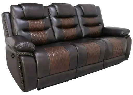Elevate your relaxation experience with the Nikko Dual Recliner Sofa with power footrests, hidden cupholders, and drop down snack tray in brown. This sofa, crafted with long-lasting construction using hardwood and plywood frames, offers stable and durable seating.