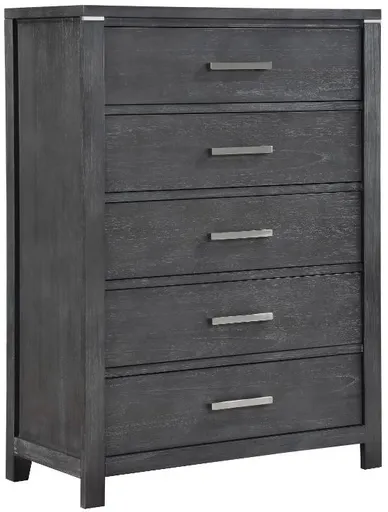 The "New Classic® Home Furnishings Odessa Charcoal Chest" is likely designed to offer both storage functionality and a stylish addition to your bedroom or living space. The dark charcoal finish can add a contemporary and sophisticated touch to your decor.