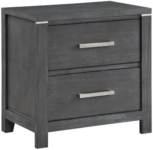 The Odessa Bedroom Collection embodies modern sophistication and luxurious comfort. Crafted with high-quality pine solids and Mindy veneers, this collection showcases the perfect blend of durability and beauty. The charcoal gray finish with white hangup adds a touch of elegance and depth to each piece