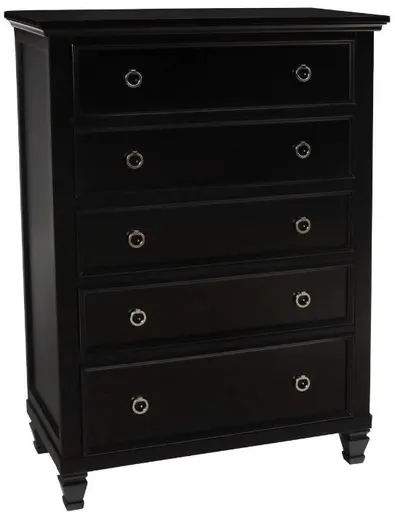 The Tamarack Chest in Black is a true standout, showcasing durable construction with a blend of solid poplar, basswood veneers, and eco-friendly manufactured wood for unmatched strength and longevity. This chest's versatile transitional style masterfully combines contemporary clean lines with classic paneled detailing, effortlessly merging modern and traditional aesthetics.