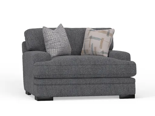 The Pasadena Chair and a Half offers an inviting blend of comfort and style, making it a perfect addition to any living space. Upholstered in soft, durable 100% polyester gray fabric, this oversized chair provides extra deep seating for a truly cozy experience. Down-filled accent pillows, adorned with stylish geometric patterns and soothing textures, enhance both the comfort and visual appeal. Fully padded sides and backs deliver plush support, while d-rings securely fasten the seat cushions to the frame for added stability. Ideal for lounging or relaxing, the Pasadena Chair and a Half brings both sophistication and ultimate comfort to your living room.