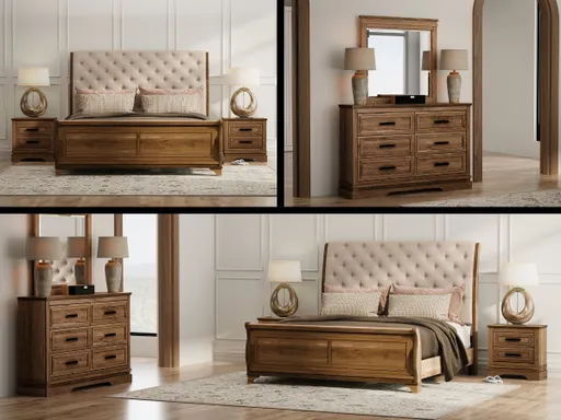 The Pecan Bedroom Set offers a complete and cohesive design solution for your master or guest bedroom. Available in King or Queen sizes, this set includes the beautifully crafted Pecan sleigh-style bed, along with a matching six-drawer dresser and large mirror. With its warm brown finish and timeless styling, the set brings a blend of traditional comfort and contemporary durability to your space. Rich in texture and detail, the Pecan set is perfect for those who appreciate classic aesthetics with modern performance.