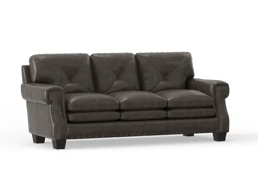 Update your classical seating area in luxury with the Pilot Leather collection. Featuring a subtle design, it matches any room background. Deep box seats and fixed back cushions offer the comfort you deserve. The cushions are tailored with a welted seam for an elegant look. This traditional-style sofa is rich in classical details with nailhead accents along the front panels of the arms. Team it with a matching ottoman and loveseat for a pulled-together interior.