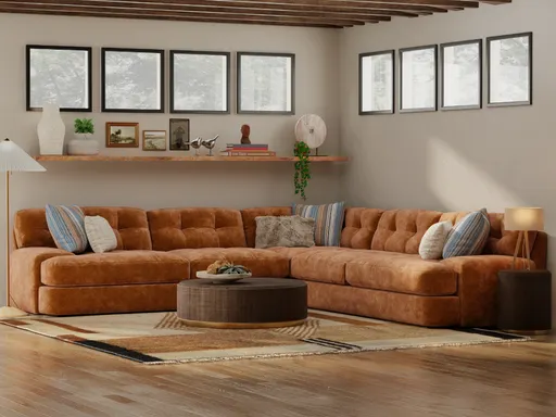 The Reed 3-Piece Sectional brings a bold yet sophisticated touch to any living space with its rich burnt orange fabric. Designed for both style and comfort, this sectional features a classic button-tufted seat and back, adding timeless elegance and texture to its plush silhouette. Crafted for ultimate relaxation, the cushions boast a super-soft foam core encased in a bag filled with blown polyester fiber, offering exceptional support while maintaining a cozy feel. The no-sag seat suspension system, reinforced with heavy-gauge sinuous steel wire, ensures lasting durability and resilience, keeping the sectional looking and feeling great over time. Adding contrast and dimension, the Reed Sectional includes a set of stylish throw pillowssome in deep navy for a striking pop of color, while others feature a striped pattern in shades of blue and rust for added visual interest. These accents perfectly complement the sectional’s warm tone, creating a cohesive and inviting look. Perfect for both lounging and entertaining, the Reed 3-Piece Sectional is a statement piece that brings personality, comfort, and timeless design to your home. Whether placed in a modern, eclectic, or mid-century setting, this sectional offers the perfect balance of style and functionality.