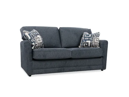 Introducing the Spencer Full Sleeper Sofaa versatile and stylish addition to your living space. Upholstered in a sophisticated navy fabric, this full-size sleeper sofa offers both comfort and functionality. The sofa comes with two throw pillows, enhancing its aesthetic appeal and providing extra comfort. Crafted with precision in the USA, it features sinuous wire support and block foam with poly fiber wrap for a supportive and cozy seating experience. For those who appreciate customization, visit our nearby retail location to explore a variety of fabric options that suit your taste and complement your home decor. The Spencer Full Sleeper Sofa is designed to meet your needs with style and comfort. Upgrade your living space with the Spencer Full Sleeper Sofaan excellent choice for those seeking a blend of modern design and practical functionality.