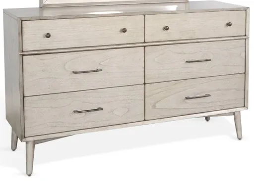 This American Modern bedroom set is elegant and reflects the influence of mid-century modern furniture design with a modern grey finish. Its delicate straight lines and clever construction with mindi solids and veneers make this bedroom set the perfect choice for any bedroom.