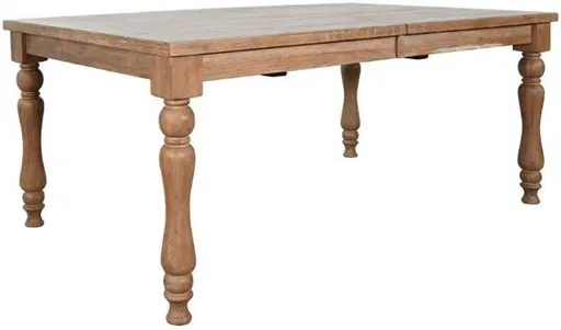The Sierra Dining Table brings an elevated rustic style to any space. tI features two self-storing butterfly leaves that expand the table from 72" up to 96". This beautiful table is crafted from wire brushed mindi and coordinating chairs from solid mahogany.