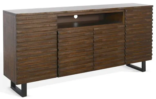 The boxy silhouette and two sled legs will give your living room a mid-century modern vibe. It has two side cabinets with adjustable shelves and two smaller cabinet doors to fit all your necessities. The open shelf is perfect for a sound bar with cord management.