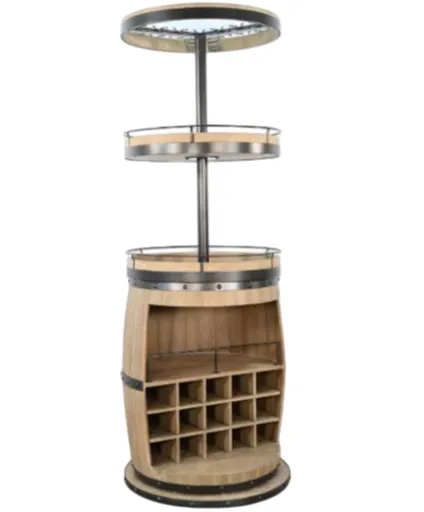 The Wheat Barrel Bar with Swivel is crafted from mahogany solids and veneers, this barrel-style bar features a 360-degree swivel base, wine bottle storage, and a built-in glass rack. Finished in a warm wheat tone, it’s a perfect blend of rustic charm and functionality.