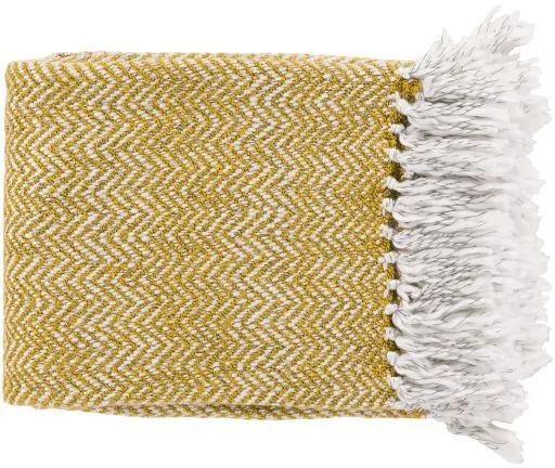 The Trina Saffron 50" x 60" Throw Blanket from Surya is woven and made up of 90% Acrylic, 10% Polyester.