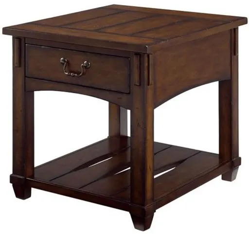 The Tacoma Brown Table collection offers a rustic and charming addition to your living space, with options for a cocktail, accent, or end table. Crafted from Poplar solids and veneers, these tables feature a rustic brown finish with burnished edges, creating a warm and inviting atmosphere. The V-grooved planked tops and distressing add to the collection's character.The cocktail table stands out with a lift-top mechanism, providing storage capability inside, and a lower open shelf at the bottom for added functionality. The end table and accent table each come with one drawer, with the accent table having a slimmer profile for versatility in placement. Elevate your space with the Tacoma Brown Table collection, where rustic charm meets practical design for a welcoming living area.