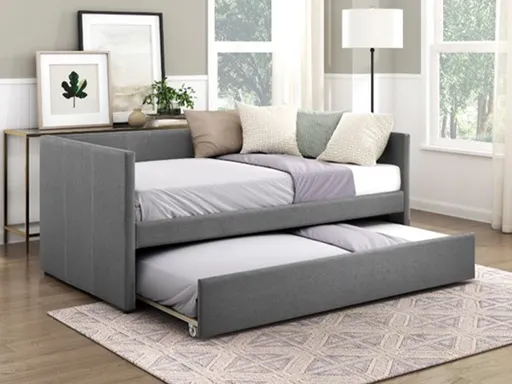 Maximize both style and functionality in your space with the Tucker Twin Daybed with Trundle. Featuring a clean modern design and soft upholstered finish, this piece easily transitions from a comfortable seating area by day to a practical sleeping solution by night.