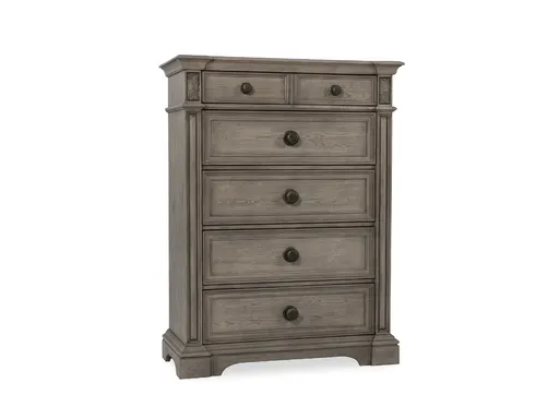 The Tulsa Chest offers classic design with smart storage in a compact, vertical footprint ideal for bedrooms where space is at a premium. Made from durable rubberwood solids and veneers, this chest features a gray wash finish that highlights the natural wood grain and adds a touch of rustic sophistication. Its clean lines and understated detailing make it a versatile addition that blends seamlessly with both traditional and transitional bedroom styles.