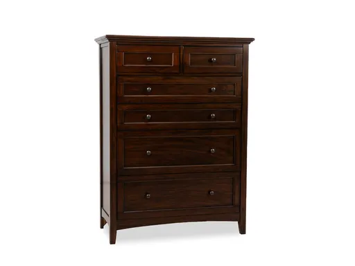 The Tuttle Chest delivers classic elegance and everyday functionality with rich materials and timeless craftsmanship. Constructed from solid mahogany and finished in a deep cherry brown, this six-drawer chest offers enduring quality and traditional styling. Clean lines and subtle framed detailing give it a refined look that fits beautifully in both traditional and transitional bedrooms.