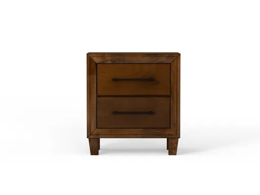 The Woodward Nightstand combines traditional craftsmanship with timeless style, making it a functional and elegant addition to any bedroom. Constructed from sturdy brown rubberwood and accented with Okume veneers, this nightstand features a rich walnut finish achieved through a careful multi-step process that brings out the natural beauty and depth of the wood.