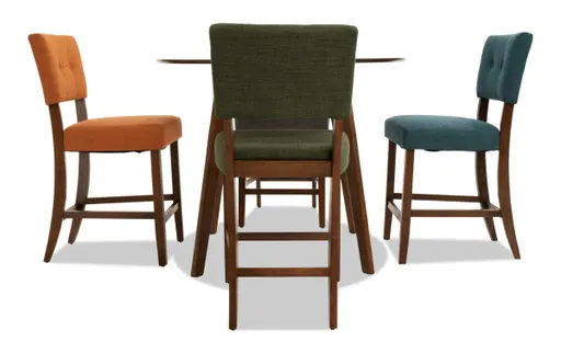 Add a pop of mid-century modern style with my counter height Bettie dining set. The button tufting and flared legs give off retro vibes, while the Bob-O-Pedic Memory Foam seats add modern comfort!
