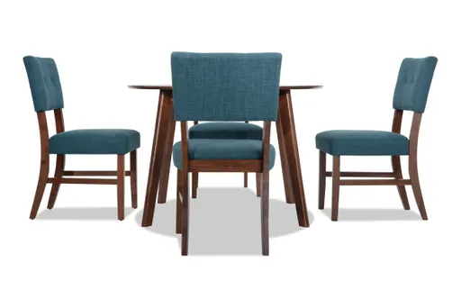 Bettie 5 Piece Walnut & Teal Upholstered Round Dining Set