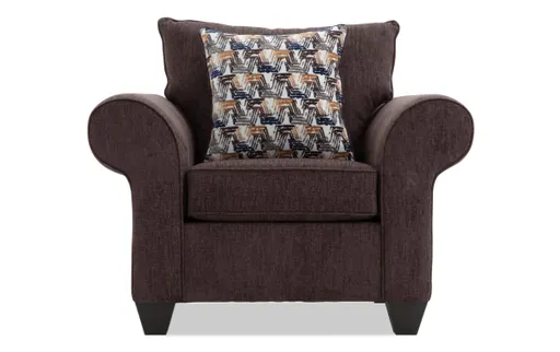 Comfort, reimagined. Just when you thought you'd enjoyed true comfort, my Kylie chair entered the game! With layers of my irreplaceable Bob-O-Pedic Memory Foam, no-sag sinuous spring seating, and an included accent pillow, experience relaxation like you never have before! Roll arms and an uber-cozy polyester upholstery only adds to the comfort of my transitional treasure.