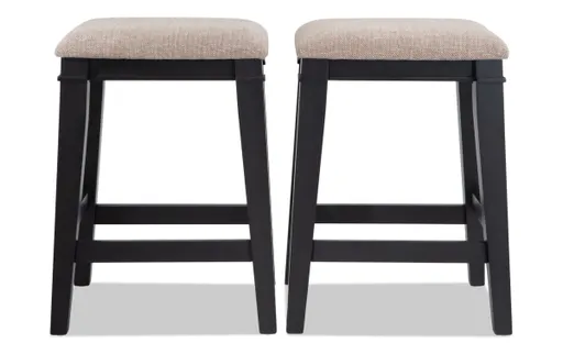 My Set of 2 Montana Upholstered Counter Height Stools are the perfect rustic addition to your kitchen area. A neutral upholstered seat sits atop a sturdy wooden frame in a lovely finish. There's even a layer of my Bob-O-Pedic Memory Foam for comfort! Wow, can you imagine- a kitchen island stool that's both comfortable AND stylish?!