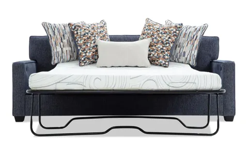 Quinn Navy 90'' Sleeper Chofa with Queen Cooling Mattress & USB & USB-C Ports