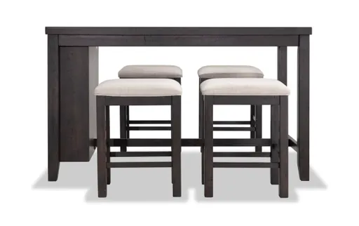 The kitchen island of your rustic dreams! Wine and dine your company and gather around my Sonoma Kitchen Island Set! This storage-savvy island with a charming rustic espresso finish has four slots for your favorite vino, and three shelves that make the perfect storage area for your cocktail and wine glasses. Additionally, the included power outlet with USB port allows you to charge your must have devices without leaving the room. These four stools are fit for comfort with a plush layer of Bob-O-Pedic Memory Foam in the neutral colored fabric seat. Talk about top-quality for an untouchable value!