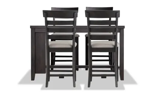 Wine and dine your company and gather around my Sonoma Espresso Kitchen Island Set! This storage-savvy island with a charming rustic espresso finish has four slots for your favorite vino, and three shelves that make the perfect storage area for your cocktail and wine glasses.Additionally, the included power outlet with USB port allows you to charge your must have devices without leaving the room. Complete with four stools fit for comfort with a plush layer of Bob-O-Pedic Memory Foam in the seat covered in a beautiful, neutral fabric. Talk about top quality for an untouchable value!