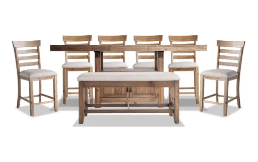 Sonoma 8 Piece Natural & Beige Upholstered Extendable Counter Height Dining Set with Storage Bench | Furnzy.com - Shop local furniture stores in one place