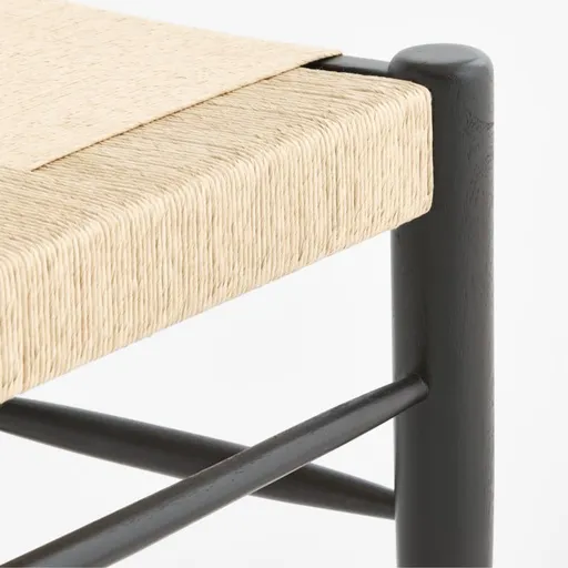 Our Adriel bench blends the warmth of farmhouse style with the sophisticated simplicity of Scandinavian design. The acacia frame draws on tradition with tapered legs and pillowed stretcher bars, made contemporary with a streamlined design, bullnose ends and a wirebrushed black finish to bring out the grain. The seat echoes traditional rush chairs, wrapping the frame in a modern pattern that crisscrosses wide bands of handwoven paper cord in a natural beige color.