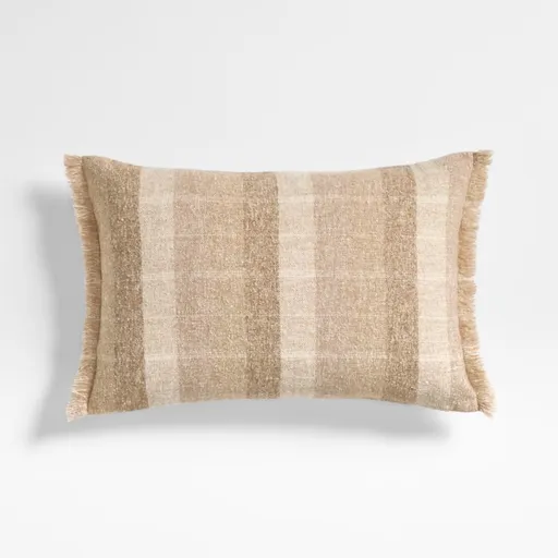 We love the way our Agnes pillow ties together the rest of a throw pillow collection. Melange-woven for a soft and subtle look, the tonal wool blend is patterned in wide vertical stripes and horizontal ticking stripes (or flip it over to show off the heathered solid side). Fringes finish two edges of the pillow for a final touch of coziness. Our exclusive lumbar throw pillow includes your choice of a plush feather-down or lofty down-alternative insert.